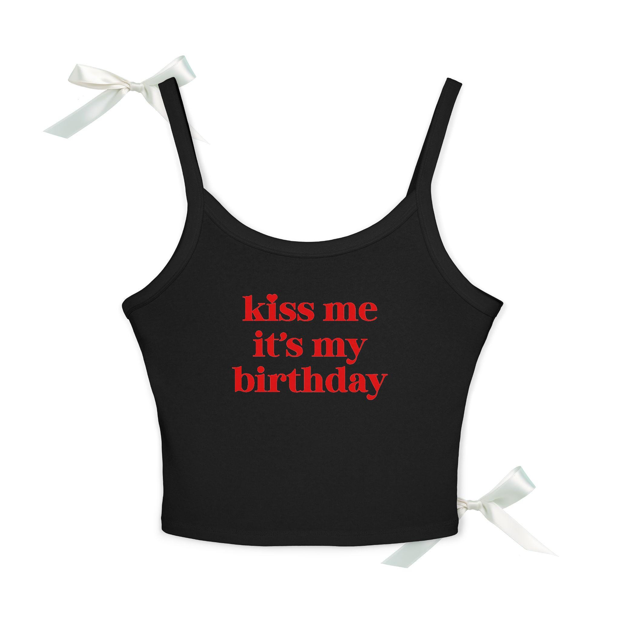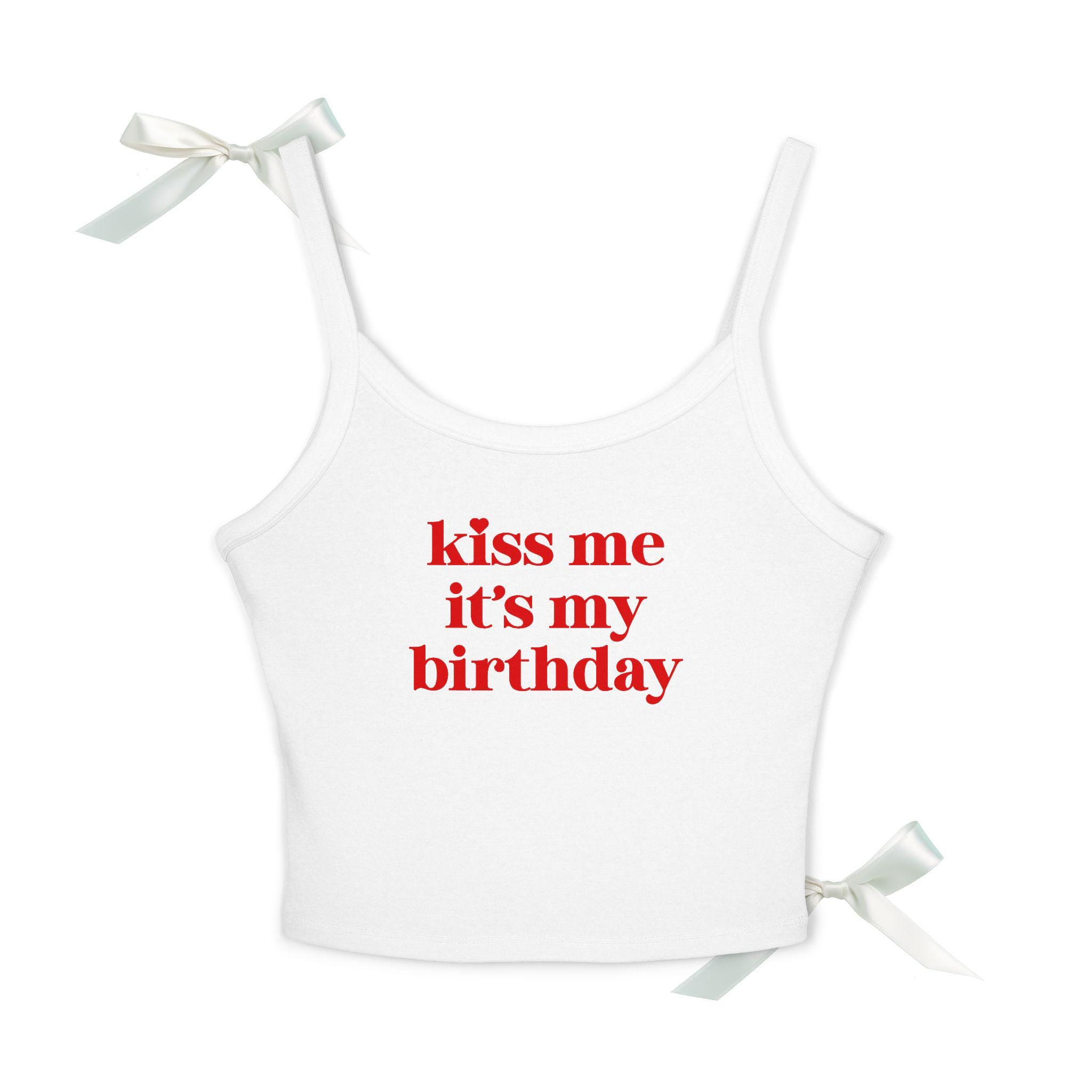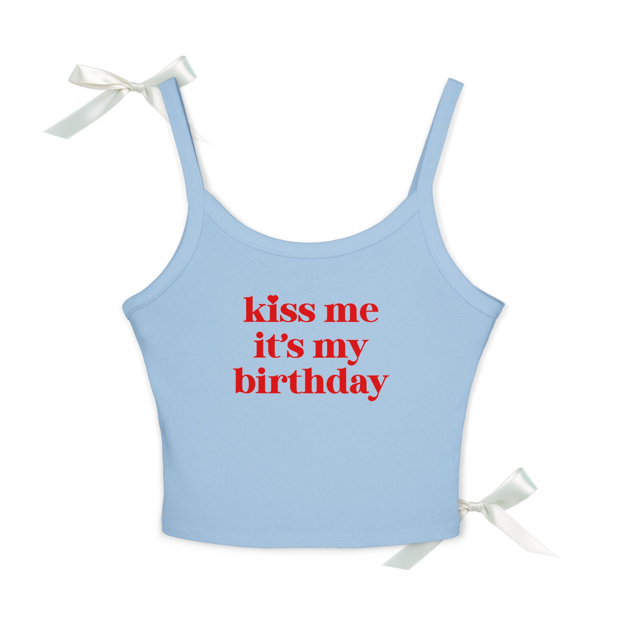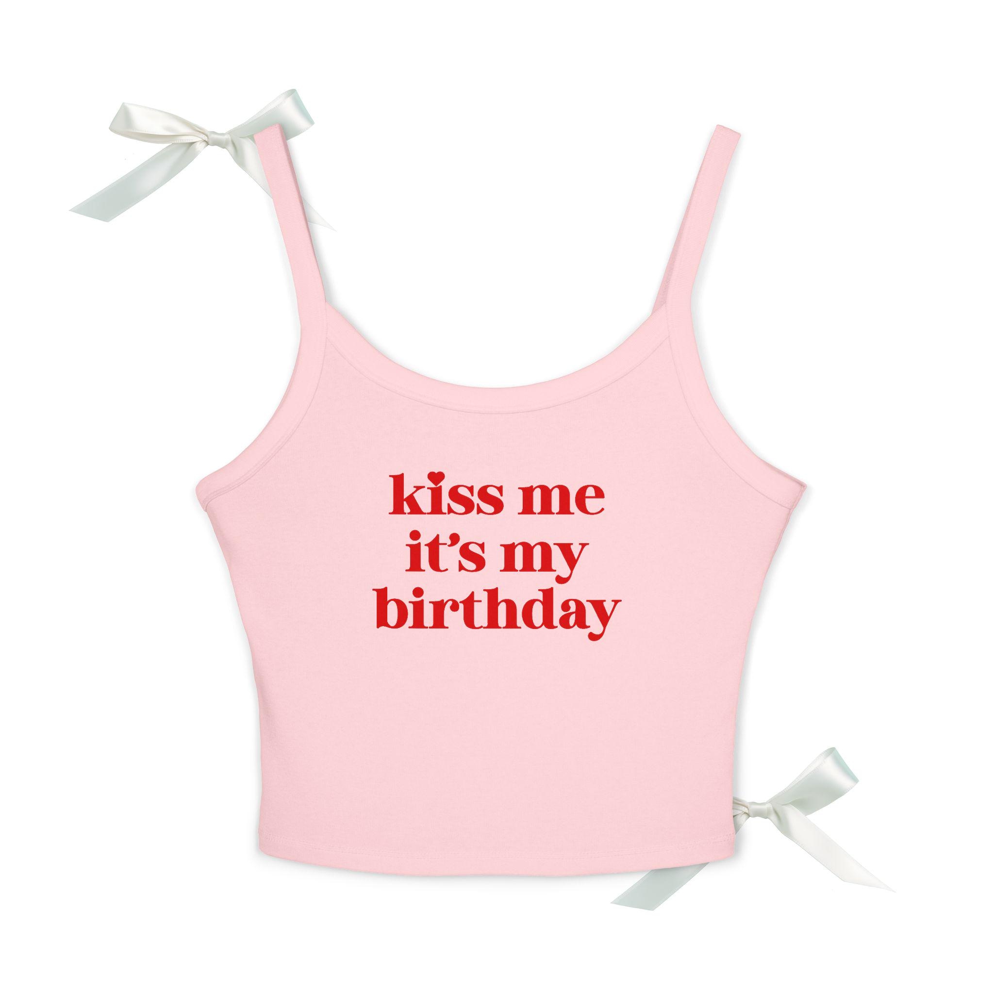 Design: Bold pink “Kiss Me It’s My Birthday” text on front – fun & feminine.